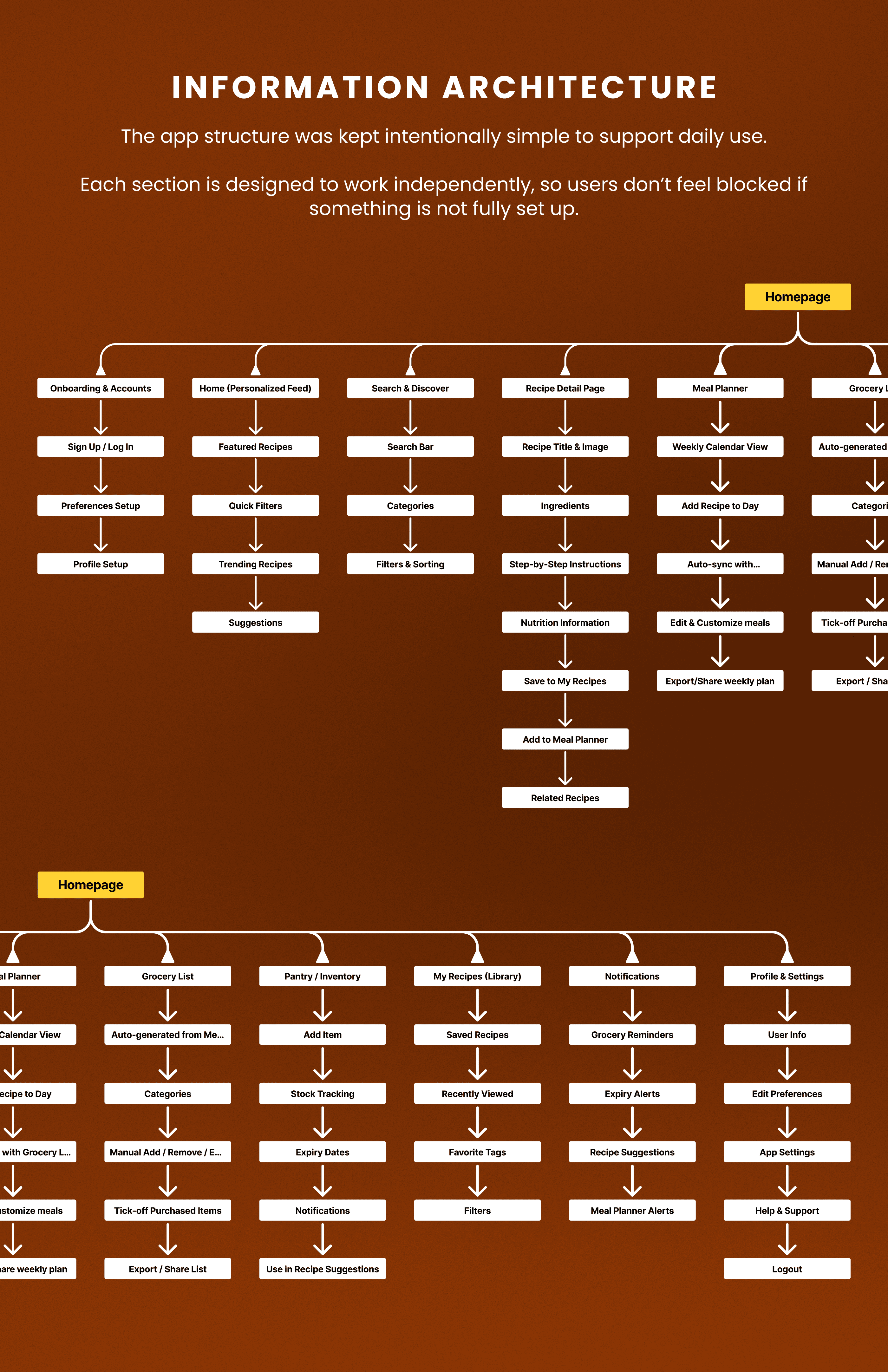 The biggest challenge was designing for inconsistency. Users don’t always track their pantry, set preferences, or plan ahead. The product needed to work even with incomplete inputs—supporting users whether they had full data, partial data, or none at all. This required a shift from system-driven design to behavior-driven design.
